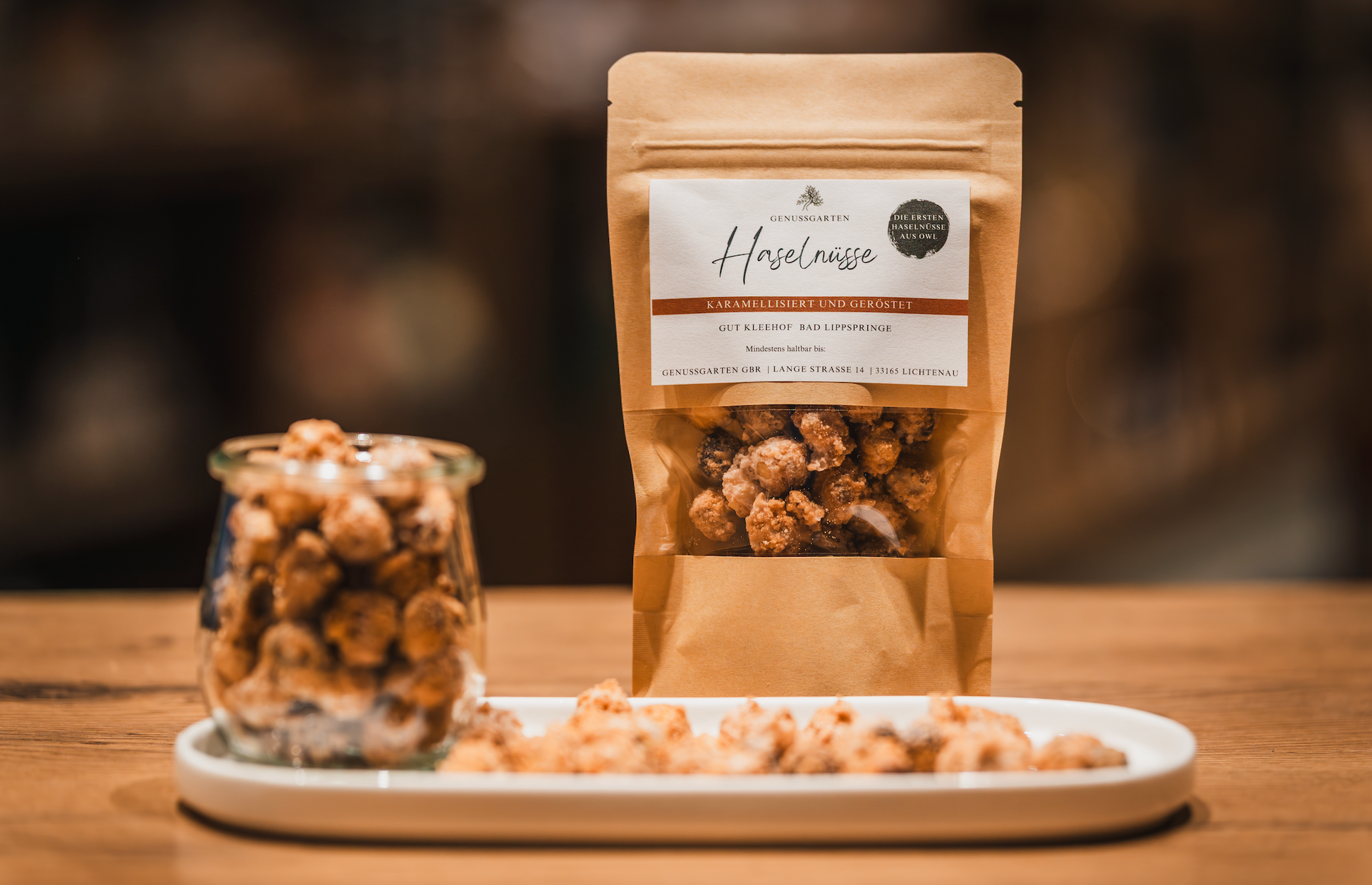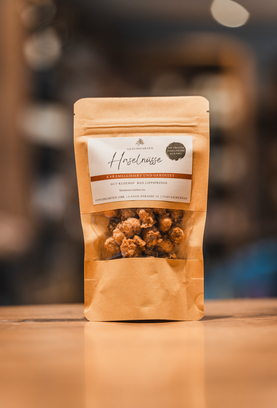 Genießen Sie den unwiderstehlichen Geschmack unserer Haselnüsse, die als erste Haselnüsse in OWL wachsen. Sorgfältig frisch geknackt, geröstet und fein karamellisiert, werden sie zu einer leckeren Spezialität wie vom Weihnachtsmarkt. Die Kombination aus zarter Süße, vollmundigem Nussaroma und knuspriger Textur macht jede Portion zu einem besonderen Genussmoment.